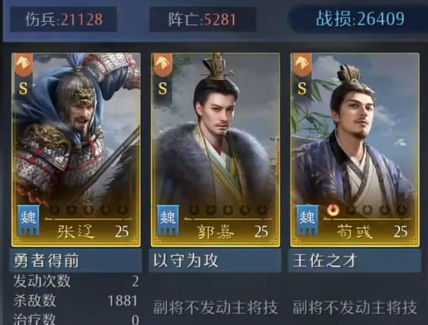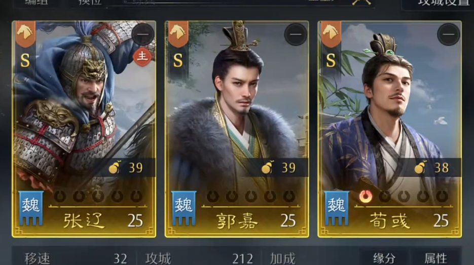 郭嘉在此体系中承担关键的谋略压场与控制职能。其技能组可有效衔接荀彧的“驱虎吞狼”,在触发额外伤害的同时,进一步延长敌方减益持续时间,并通过自身被动提升全队谋略穿透。三人技能链路紧密咬合,既保障了输出密度,又通过兵力回复与状态干扰维持了中后期的战场控制权,实现真正意义上的攻防一体化。