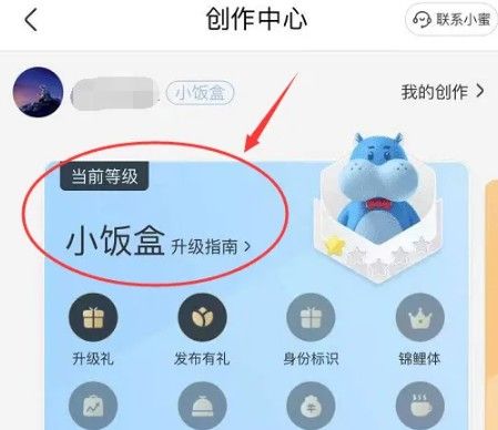 然后就进入创作中心界面,在创作中心里,可以看到账号当前等级为【小饭盒】。