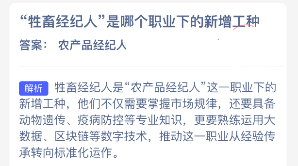 以上就是“牲畜经纪人”是哪个职业下的新增工种?支付宝蚂蚁新村最新答案2025年12月24日,更多精彩内容,请点击关注更新!