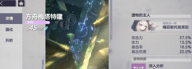 接下来聊聊遗物。遗物相当于角色的装备,能提供属性加成还有额外技能。每个遗物都有对应的专属精灵,给专属精灵装备上之后不仅属性合适,还能触发技能效果,提升幅度非常大。当然其他精灵也可以装备遗物,只是吃不到技能加成,但属性提升还是有的。遗物初始是1级,需要用遗物石来强化升级。1到10级用普通遗物石,11到20级要高级遗物石,再往后就得用太古遗物石了。这些材料在记忆回廊、领地打工还有战利品玩法里都是可以刷到的,商店也可以兑换一些。