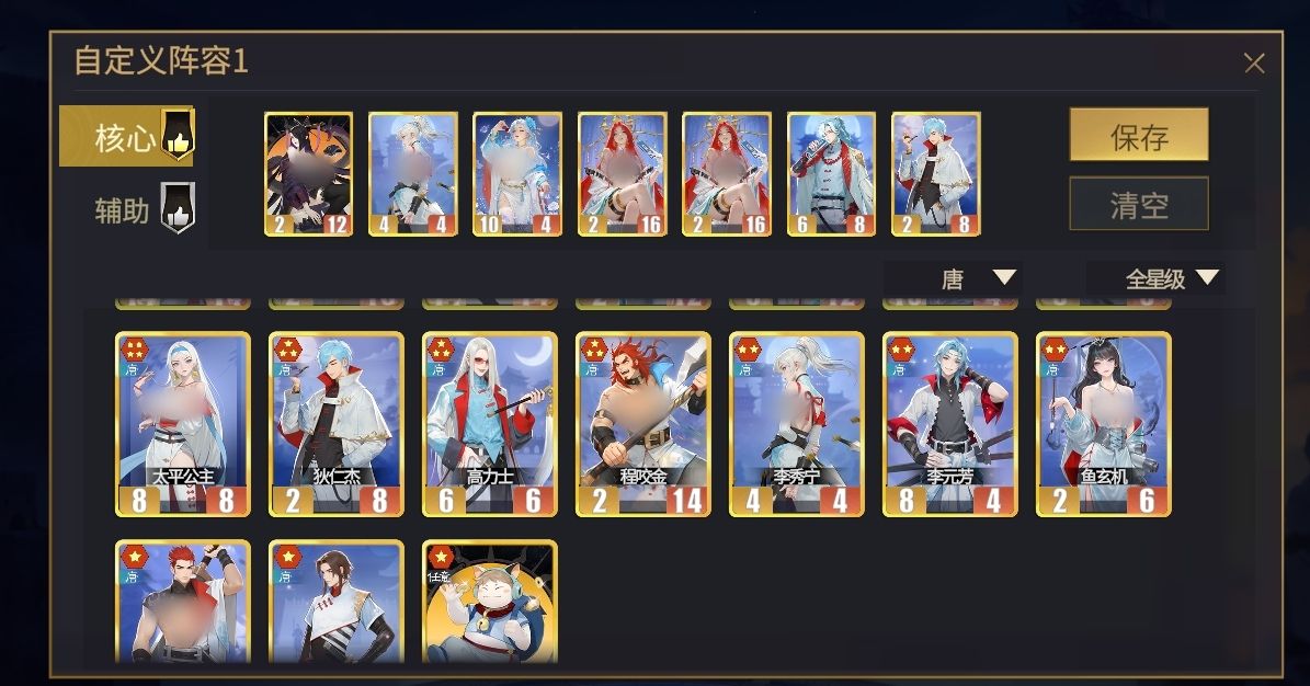唐阵营中的李秀宁、杨玉环能与玄武形成极佳的搭配,同时她们也都是遗计唐流派的核心。在使用时可将这两名部将摆在前置位,快速令她们阵亡配合玄武的特性来召出大量的禁军,还能触发武则天的鼓舞为全部的唐阵营部将提升数值。此阵容的特点时前期可利用多名禁军来帮助自己进行攻击,为武则天留足发育时间,待她的属性全面增高后,便可接过输出重任带队作战。搭配时,可上李秀宁、杨玉环、玄武、武则天(两位)、长孙无忌、狄仁杰。