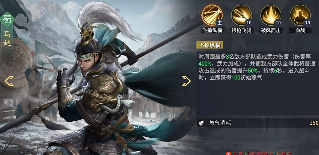 马超是蜀国阵营里的角色,自身的战斗能力非常强,可以利用四项攻击能力给对方带来伤害,每次挑战的时候,能给同时三名成员带来伤害,这种群攻角色非常适合玩家各个阶段,可以选择把它和其他的几个蜀国阵营角色组成五虎队,首先就是把马超和关羽,张飞搭配在一起,这几个角色都有重击伤害能力,组合起来之后可以保证队伍的输出,马超能在游戏里产生多段伤害,关羽可以作为主将,搭配上张飞能保证整个队伍的均衡,不管是哪种类型的战役,都能利用角色的战力快速输出。