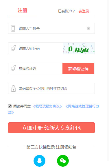在“租号玩”平台,您可以轻松租借到皮肤齐全、英雄全解锁或拥有稀有武器皮肤的各类游戏账号,涵盖手游、端游、页游及Steam等。注册方式非常简单:访问租号玩官网,点击页面上的“注册有礼”,即可通过手机号快速注册,或直接使用QQ、微信一键登录,快速开启租号体验。