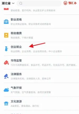 实名认证完毕后,找到左下方首页右侧的的便民点击进入,找到创业就业点击进入