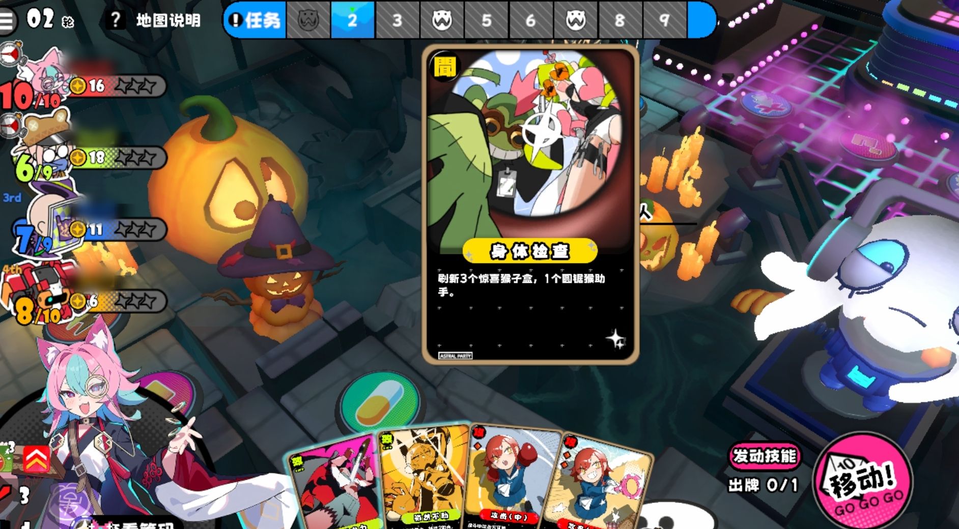 各位在游玩吉星派对的PVE模式时,将与其它玩家共同协作完成击败地图大boss的任务。每张图的大boss都不一样,他们也有着多种不同的机制,并且他们的机制可直接在左上方的地图说明里查看。当玩家们所选的地图难度较低时,可选择不走机制直接去击杀boss,但若是所选的地图难度较高,最好还是以走机制为主,强行去击杀boss的做法几乎不可能成功。此外,游戏会在正上方为人们进行回合标注,已完成的回合会变黑,当前正在进行的回合会高亮,而会出现地图事件的回合则会附带上怪物标识,点看就能看到该回合会发生的事件。