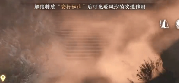2、首先要去地图的(1707,1615),解锁大宝箱获得【安行如山】特质可以抵御风沙,不然遇到风沙天气寸步难行