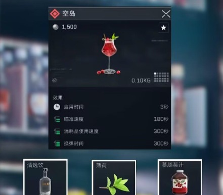 《三角洲行动》空岛配方一览,“空岛”是游戏中顶级的猛攻型特饮,能同时提升换弹、瞄准及使用消耗品(如打药)的速度,堪称突击流派的终极选择。其配方为清逸饮、蔓越莓汁与薄荷各一份,摇晃约10秒即可制成。饮用后可在300秒内缩短换弹与使用物品时间,并在180秒内加快瞄准,助你在正面交锋中占据先机。