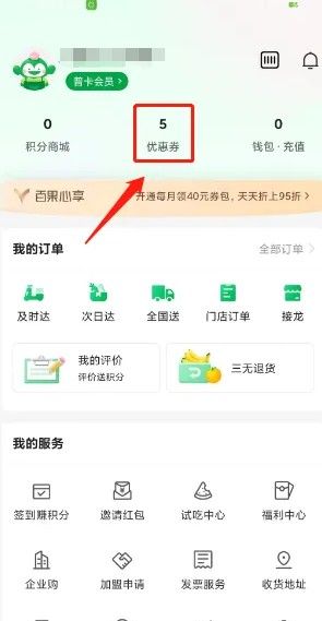百果园app优惠券兑换步骤