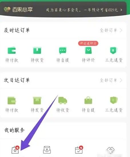 打开百果园APP,点击底部的我的选项打开。