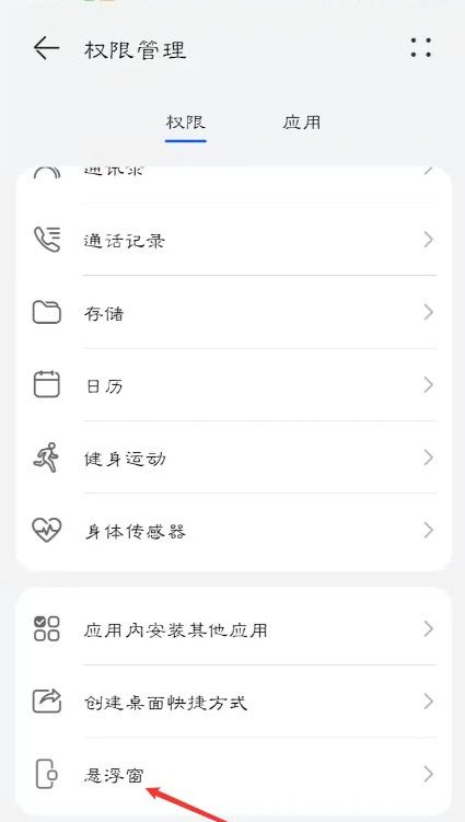 向下滑,点击【悬浮窗】。