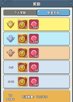 排行奖励分为个人奖励和联盟奖励,个人排名第一的玩家可以获得[石油镇·2跨领地](PVP战斗开始4秒内,我方全体可累计免疫10次伤害,免疫伤害结束前获得15%PVP伤害增加,结束后获得15%PVP伤害减免,持续8秒,该效果每30秒可触发一次)。