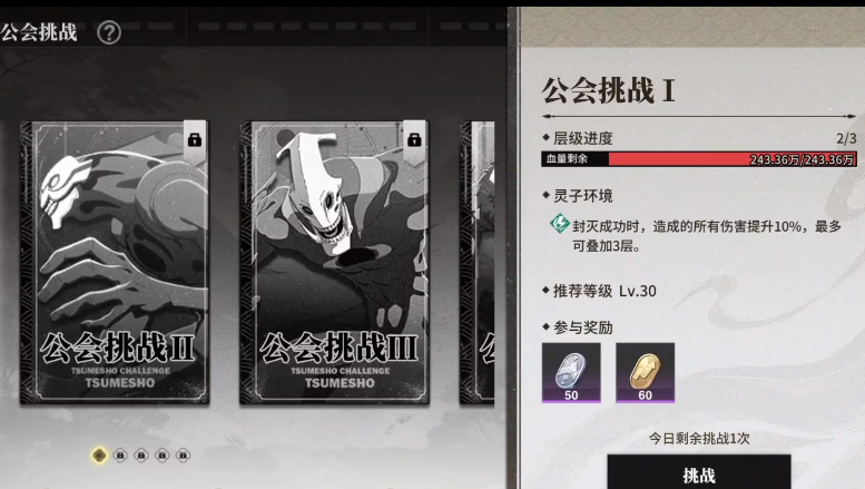 公会加入成功之后,就可以参与特定的公会挑战,但需要玩家注意的是,要想参与对战,首先需要去完成一些基础的任务,通过这些任务能提升在这个公会里的活跃度,活跃度越高,可以挑战的次数也就越多,公会挑战里面会分成多个层级,一层遇到的对手都不一样,挑战的难度也会逐渐递增,玩家要通过完成这些公会任务收集奖励,也能在这个过程中提升自己的战斗力,更重要的是,通过对战还可以增加自己和公会的亲密度。