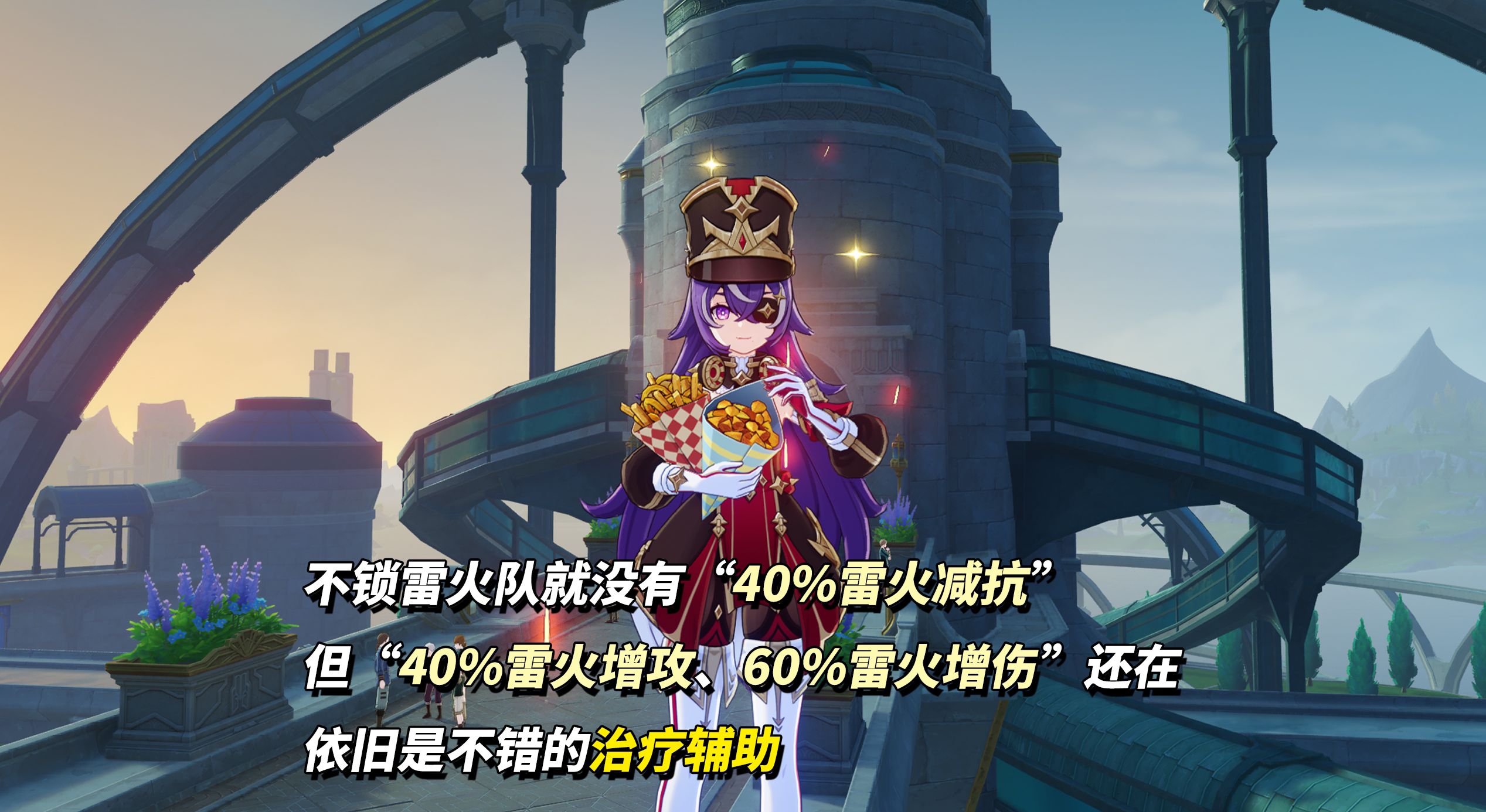 若你已经理解夏沃蕾的机制,可进一步拓展思维。在少部分特殊环境下,如幻想真境剧诗零散组合,或需引入其他元素破机制,此时40%雷火减抗不触发,但只要超载条件满足,“战技持续治疗、雷火角色40%增攻60%增伤”依旧生效,仍属于不错的增幅生存位。