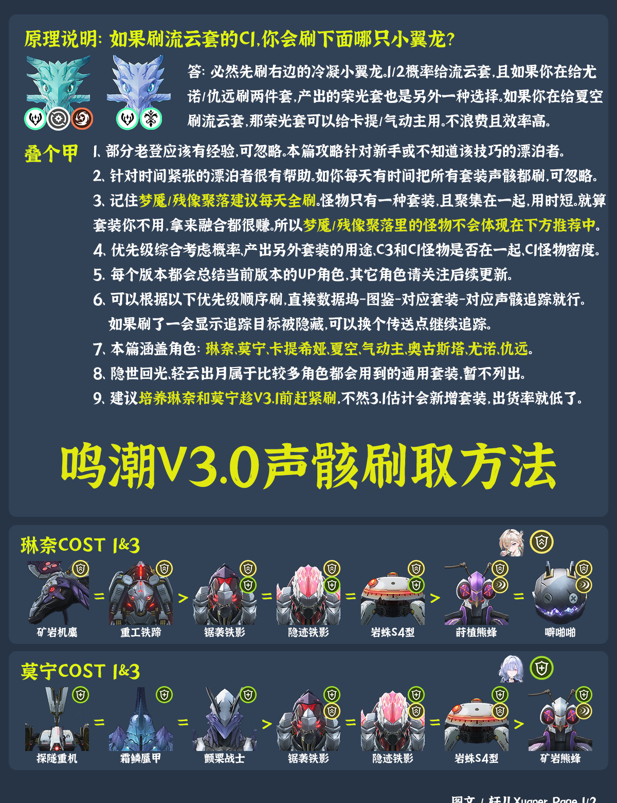 鸣潮V3.0声骸怎么刷取,本期带来玩家“轩儿Xuaner”分享的鸣潮V3.0版本几个UP角色的声骸刷取优先级推荐,包括:琳奈、莫宁、卡提希娅、夏空、气动主、奥古斯塔、尤诺、仇远。