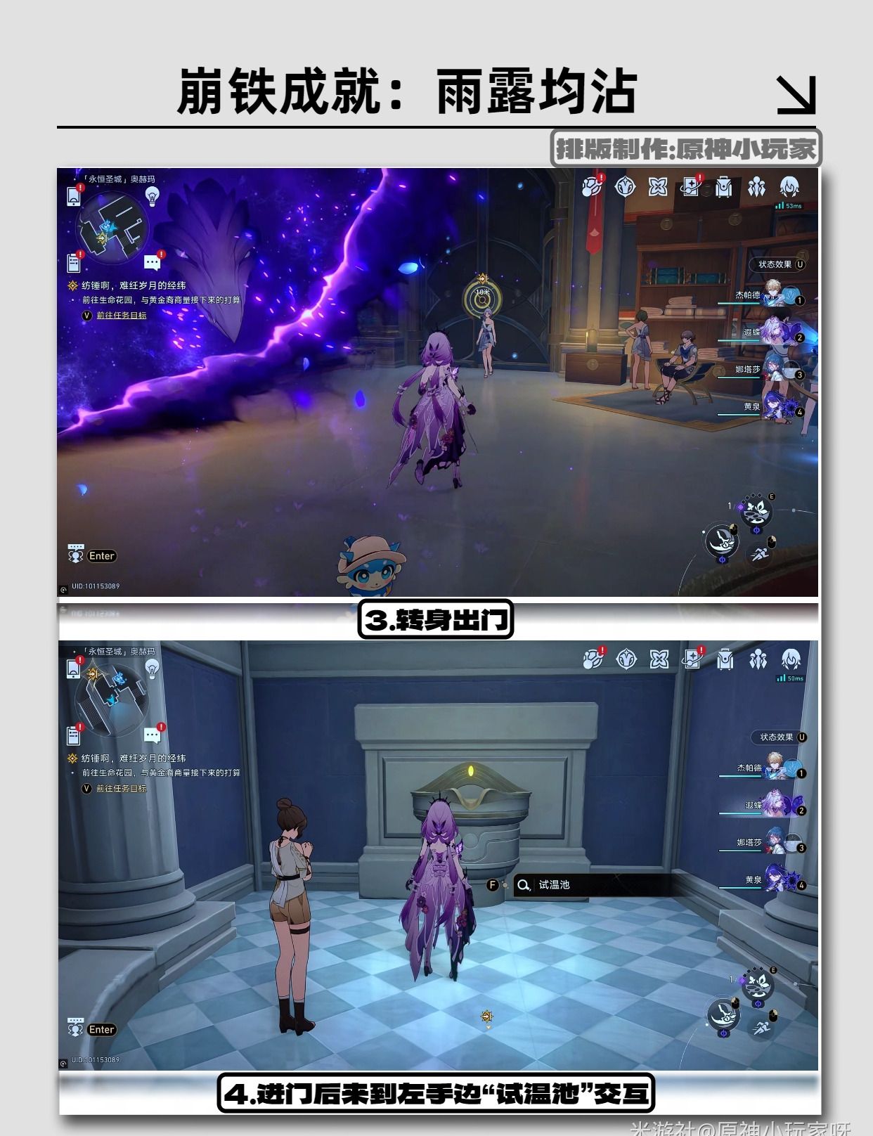 崩坏星穹铁道雨露均沾成就怎么达成,今天给大家带来的是崩铁.成就攻略,成就名称:雨露均沾,尝试过云石天宫里的高温浴池、低温浴池与试温池,由玩家“原神小玩家呀”为大家分享这些成就的达成方法。