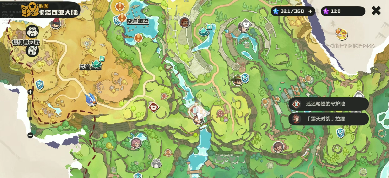 洛克王国世界迷迷箱怪的守护地在哪里?洛克王国世界迷迷箱怪的守护地是现在很多玩家所关注的一个问题,毕竟在这个地方玩家只有找到了隐蔽的路口之后,才能够获取这里的宝藏。因此众多的探险者,他们在选择体验洛克王国手游的时候,往往先要找到具体的地点,然后再合理的规划路线,这样的话就能够快速的捕捉精灵的同时,还能够获得宝藏。