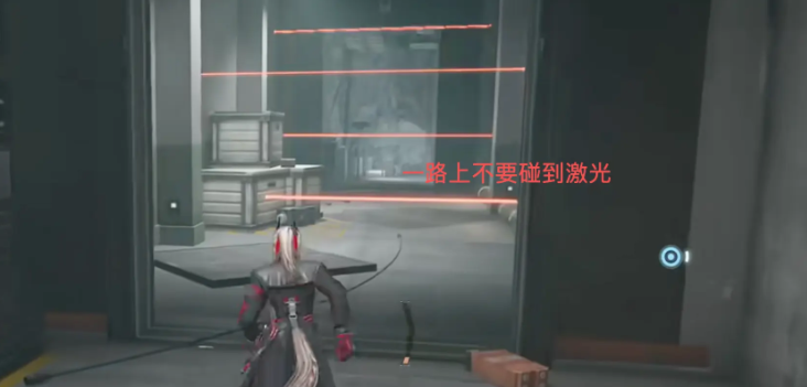 沿着任务的指引箭头前进,核心的挑战就在于要躲开一路上的激光屏障,这些激光不仅会触发警报,还会给角色造成持续性的伤害,因此就需要格外的留意激光在运行时的规律。其中有一部分的激光陷阱就会有短暂的空窗期,抓住这个时机,就能迅速的通过。面对覆盖范围比较广的激光群,可以利用场景中的障碍物,然后慢慢的推进。还要注意激光颜色的深浅,激光的颜色深浅和伤害强度直接相关。深红色激光伤害更高,就要优先躲避。浅红色激光可以根据角色当前的血量,灵活的判断通过的时间。