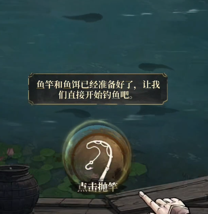 第二步:准备好鱼饵和鱼竿后,点击【抛竿】按钮。