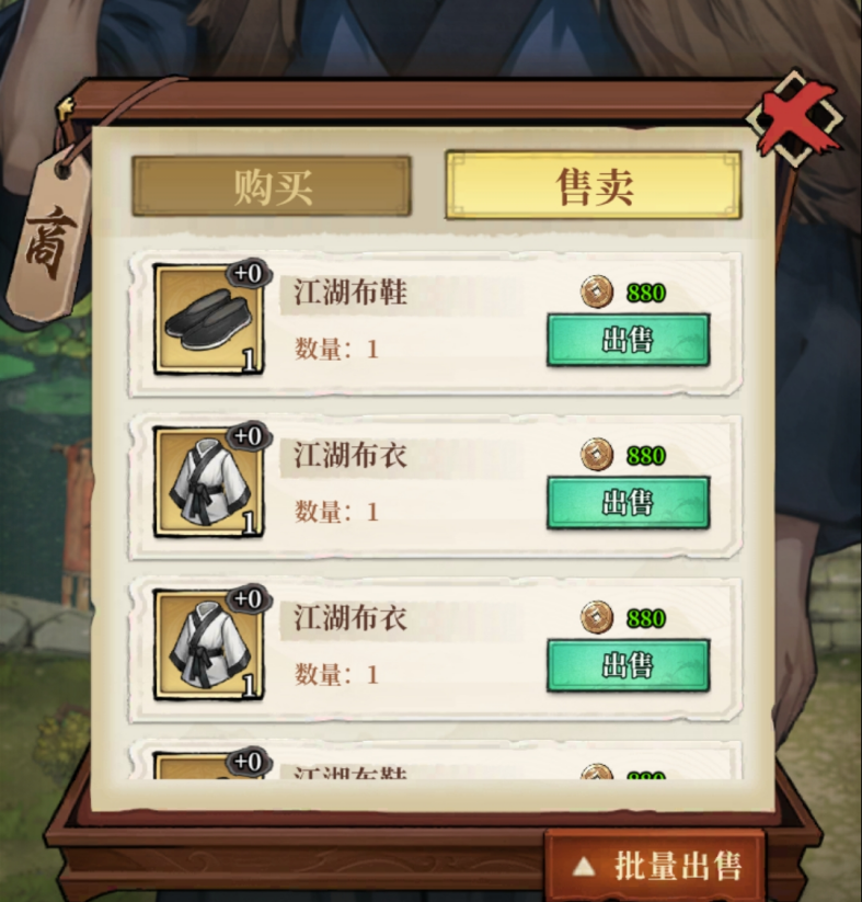 河边老翁除了可以找他购买鱼饵和鱼竿外,还可以向他出售防具和武器,换取铜币。