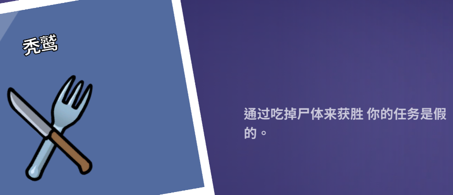 清理指定数量的出局者来获胜,你的任务是假的。(有人被刀时,身边就会出现蓝色箭头告诉你鸡腿在哪。)