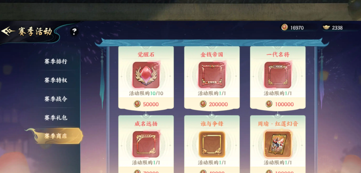 一个赛季为大家带来的时间是持续45天,而商店里面每15天就会刷新其中的物品,所以大家在里面可以注意到,如果确定是要快速清空的话,建议大家可以在兑换记录里面快速的找到觉醒石来进行对话,那么在赛季里面路了一如果大家超100万氪金的话,建议先优先兑换的要是觉醒石哦,然后兑换其他的强化武将也可以让大家的强度上升一些,那么第二个方式就是通过限时活动,游戏里面限时活动获取到的觉醒石机会也比较多,但是拿到的次数是数量是有限的,所以大家第二点是通过限时活动去完成,第3个途径就是竞技场,在竞技场里面都要每次上升排名或者是完成胜利,系统都会给大家赠送一定的觉醒石奖励,所以在排名越高的情况下,打败敌人之后,大家能够获取到的资源确实是数量是会更多一些的,通过这些途径带来的觉醒石大家攒一攒其实是可以积少成多,完成很多角色的觉醒过程。