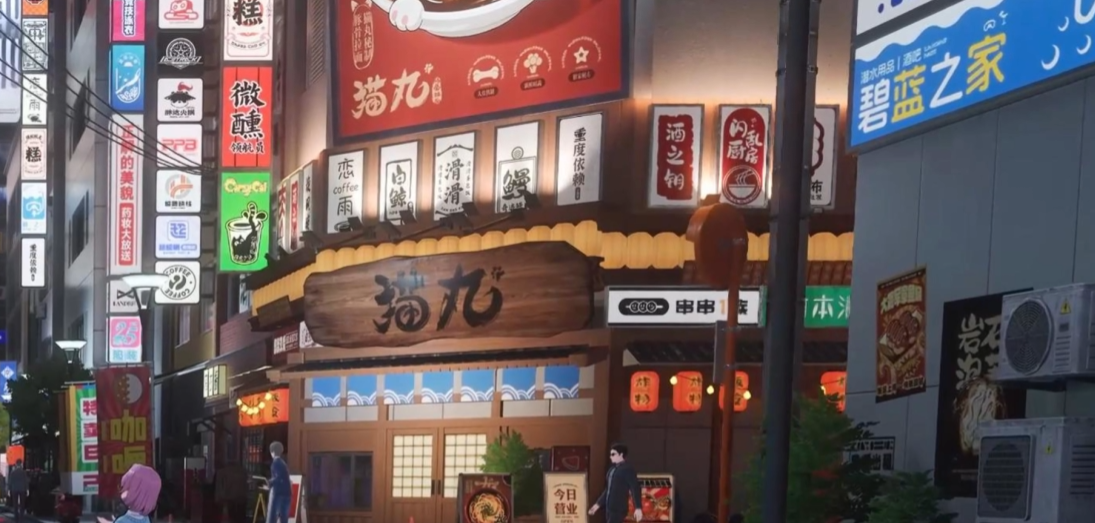 玉子市场以日式夜市为视觉基调,街道两侧密集分布功能性商铺。其中时装屋提供全角色适配服饰,支持实时试穿与外观预览,部分限定款附带属性微调效果;拉面馆则作为基础恢复节点,食用特定口味拉面可即时补充生命值或体力槽,适用于高强度探索后的快速回血。
