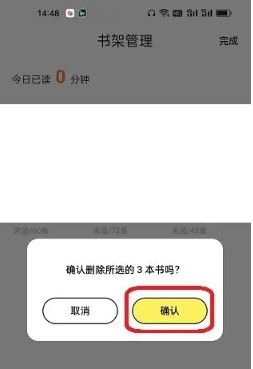 4、来到确认删除页面后,点击【确认】即可清空书架。