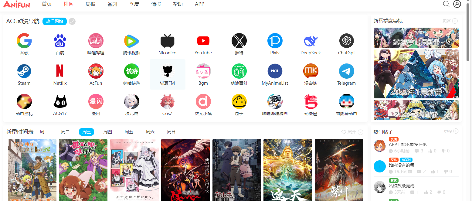 anifun官网入口:https://anifun.cn/。AniFun动漫与二次元爱好者的聚集地,提供 ACG 导航、角色关系、新番时间表与动漫资讯。加入 AniFun,一起发现与分享二次元的乐趣。