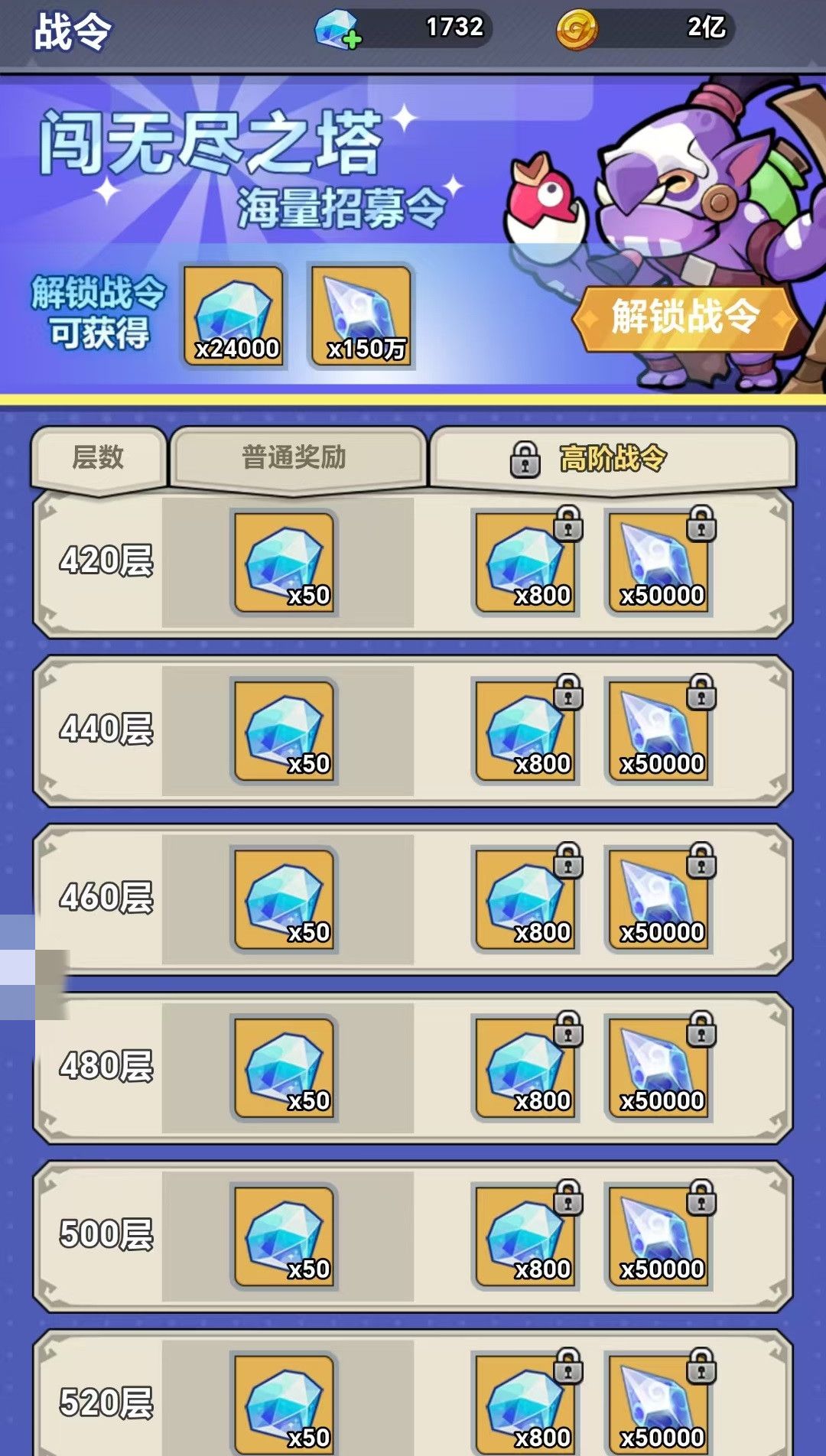 若考虑适度投入,首推月卡方案,其每日返还钻石量具备长期复利效应;其次为闯塔战令,激活后不仅解锁额外层数奖励,还可提升单层钻石获取基数。每日必购项包括金币副本、进阶石副本与秘典副本——金币副本建议在扫荡收益达100钻石及以上时购入,存在触发双倍返还(200钻石)机制;进阶石副本有概率附赠招募券;秘典副本则稳定产出各类钥匙,是钥匙积累的主要渠道。