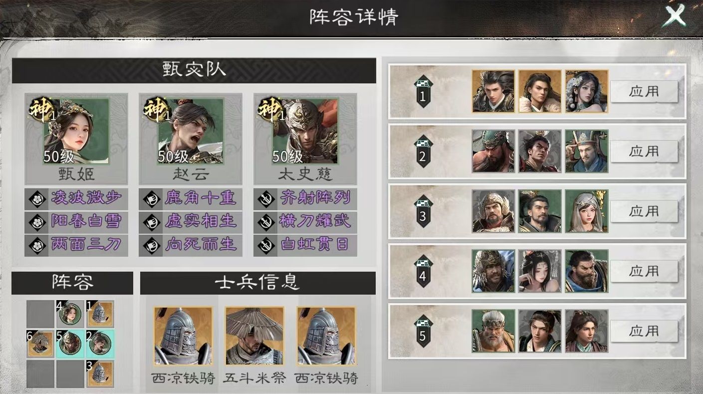 在阵容构筑上,甄姬最契合反击流体系,尤以“赵云+太史慈+甄姬”铁三角组合表现最为突出。赵云承担主力反击输出与前排抗压,太史慈提供高频普攻触发反击与稳定爆发,甄姬则专注后台支援,通过高频治疗与状态叠加维持双输出单位持续作战能力。该体系不依赖复杂连携,成型快、容错高,适用于开荒推图、资源副本及PVP对抗等多种场景。