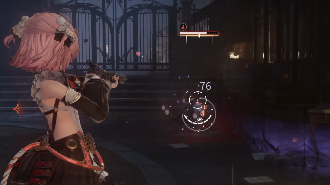 火枪萝莉承担中远距离压制职能,通过灵活走位实现安全输出,其攻击可施加火属性标记,与其他角色技能联动触发元素反应,产生额外反应伤害;该角色尤其适配拉扯战术,在应对高机动性敌人或狭窄地形时表现优异。