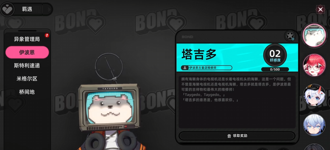 持续投递偏好礼物可稳步提升羁遇值,当累计达到指定等级阈值时,角色界面将激活“领取奖励”按钮。不同好感等级对应差异化奖励池:前五级奖励以通用型资源为主,涵盖基础装扮部件与功能道具;自第六级起,奖励内容开始按角色背景设定展开主题化设计,例如专属语音包、动态头像框、限定动作模组等。