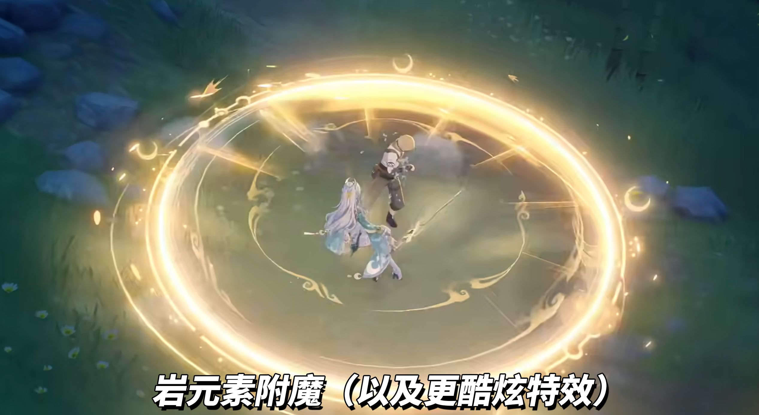 ①普攻获得岩元素附魔,持续站场普攻触发月结晶反应;