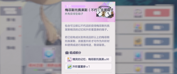 梅菲斯托佩莱斯的遗物整体遵循着专属的核心规则进行组建,每件核心专属义务都是唯一的角色归属,只能由单一角色佩戴才能够激活遗物所附带的属性加成和技能效果,如果装配的角色不对,只能触发部分基础属性的增益,作为梅菲斯托佩莱斯的核心专属遗物,黎明方舟梅塔特隆是与爆发型斗士进行组合的关键道具,可以帮助角色在叠加核心状态的过程中稳定维持自身的爆发输出能力,遗物的背景设定与欺瞒的恶魔觉醒设定相呼应,将角色的背景叙事和战斗机制进行了更好的关联,让遗物不再只是单纯的道具,还能了解到更多的故事。