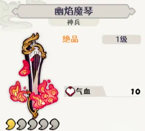 这个角色的专属神兵是”幽焰魔琴“,神兵能够在回合内首次打出两种不同元素的卡牌各三张,并且怒气一点,可恢复两个数值,有了该神奇的加持。可以让琴心快速给敌人挂灼烧。并且能够高效打出蒸发反应,所以在火系蒸发团队当中,琴心必备。