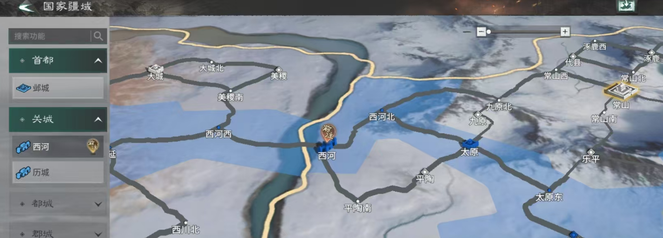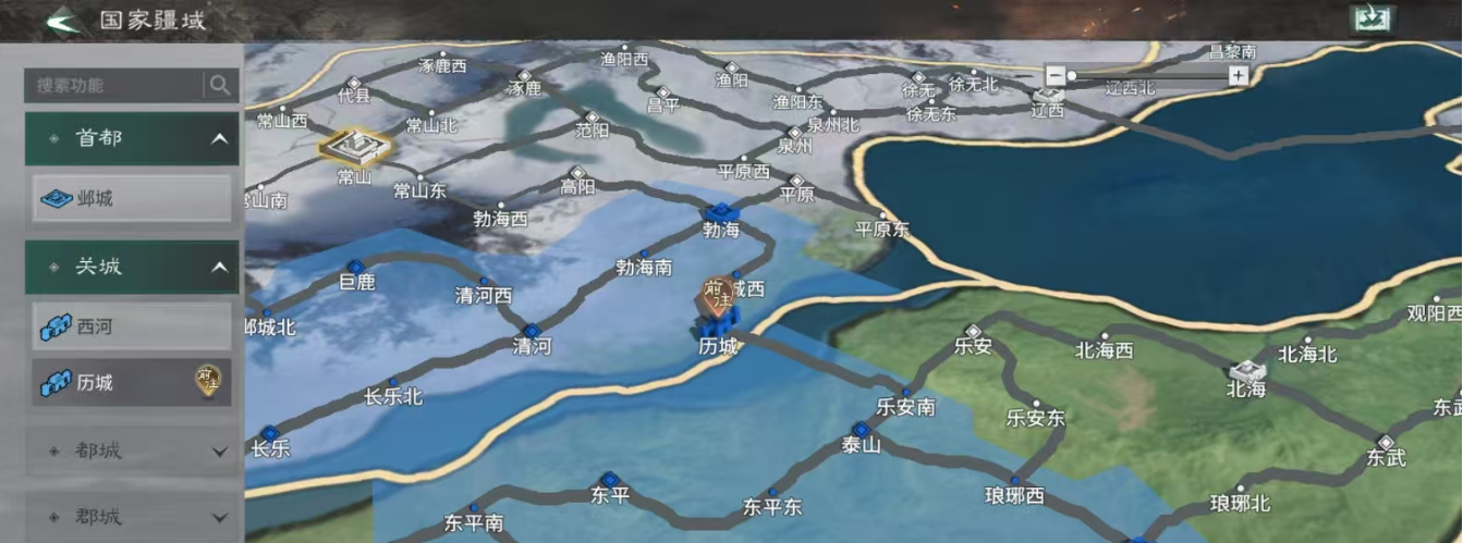在选择好出生地点之后,还应该注重资源州的选择。开服第4天就可以解锁一级资源州,尽可能选择巨鹿或者是上党。上党这边有很多的铜矿,巨鹿这主要是粮食生产的地方,这两个地方拿下来,那资源就可以养5队主力。占完之后就赶紧分兵,然后把清溪河的关卡守住,不要让别人把你的资源线抢走。第2天开二级资源州,重点选择渤海,这里就是一块肥地,而且还会连接着平原以及泉州。在打下渤海之后,就必须要把渤海南以及历城西全部占了,这就是必经之路。第10天可以选择提前在平原西屯好兵,一路解冻之后就可以铺路。