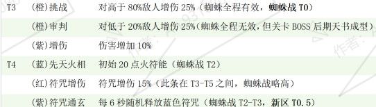 说明:位置越靠后强度越低,未列入等同T5。不追求完美高于T3即可。蜘蛛与鱼判定一致