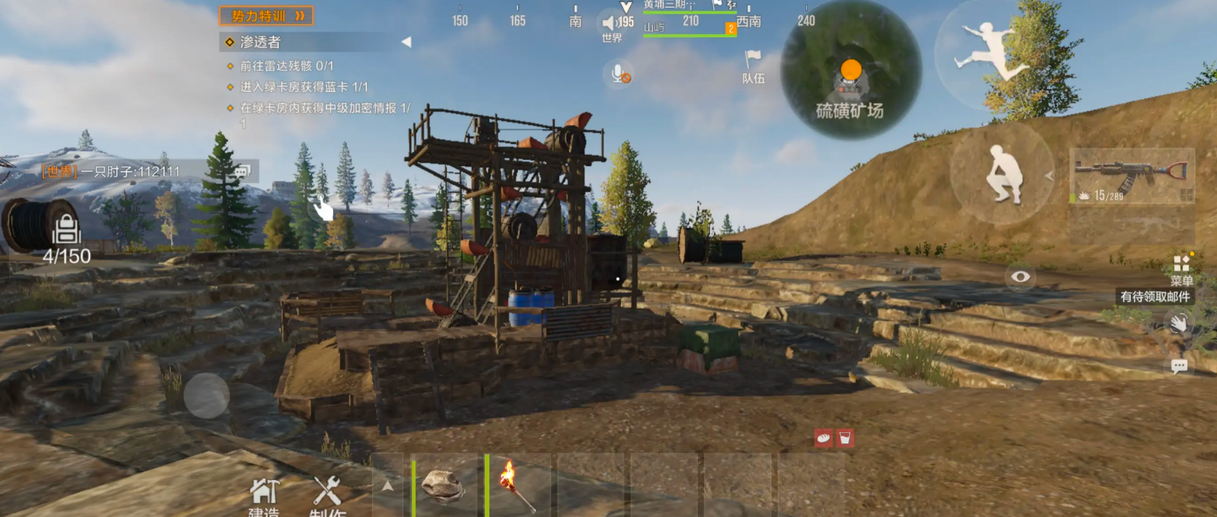 硫磺矿场是中期阶段的重点目标。地图上标记得挺明显的,分布的位置也比较开阔,没什么天然的掩体,所以开采的时候要注意观察周围有没有其他玩家靠近。好在这里没有野怪干扰,新手过来采集压力不大。硫磺矿石是用来做火药和高级武器的,等你解锁了那些厉害的武器之后就知道这东西有多重要了。不过有个地方需要注意,用油桶开采硫磺其实不太划算,一个油桶只能出1000个硫磺,性价比比较低。前期建议买把电镐自己挖,一个矿脉能挖出将近500个硫磺,效率高多了。前期少量采集一些够过渡就可以,不用囤太多。