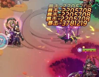 再看吕布这边,他的普攻就是普通攻击没有特殊效果。技能比较奇怪,无法主动释放,但是怒气越高打出的伤害就越高,最多能叠加到200%。他的特性是每打4次普攻之后会对全体敌人发动一次攻击。升到名将1星有概率再追加一次普攻,用来补刀效果不错。3星的时候队友放技能他会回复1点怒气,这个能帮他快速积攒怒气。神将1星的提升非常明显,只要怒气足够高就能打全体,而且伤害很可观,基本上一个人就能压制对面整个队伍。