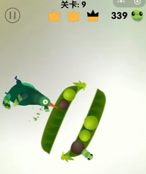 2、然后豌豆荚会转动,豆子的位置也会跟着变动,掌握好时机,将连在一起的青豆啄掉