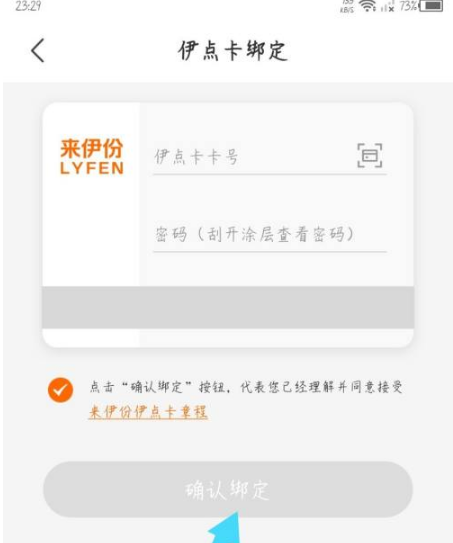 来伊份商城app怎么绑卡,在来伊份的底部菜单选项中,点击最右边的我的,然后在我的页面,点击伊点卡选项打开,点击右上角的绑定伊点卡选项,在打开的绑定页面,填写卡号和密码,点击确认绑定。
