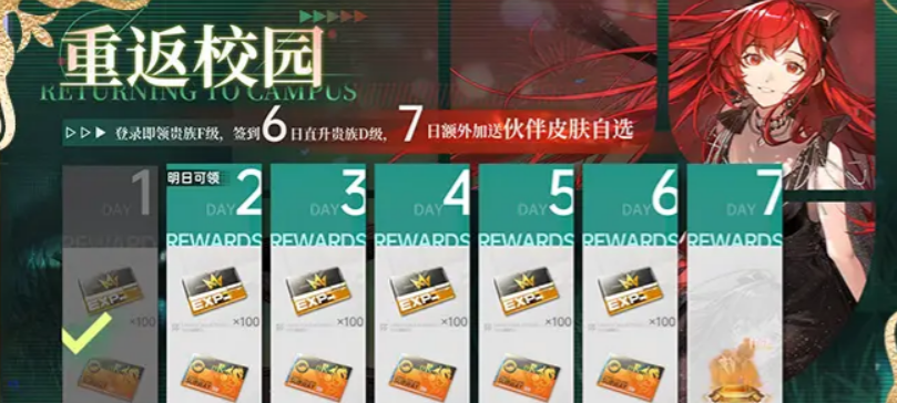 除了黑卡赠礼之外,庆典服还有一些其他的福利活动。新章始绘活动里面周卡和月卡开服7天内免费领,点一下激活就行。完成学分日常还能拿额外钻石。重返校园是个签到活动,7天能拿招募券和皮肤,贵族等级直升D级。溯归招募卡池会返场诺顿、风间琉璃、楚天骄这些限定角色。叙梦之约活动每天分享能拿50钻石,连续分享还有头像框和称号。