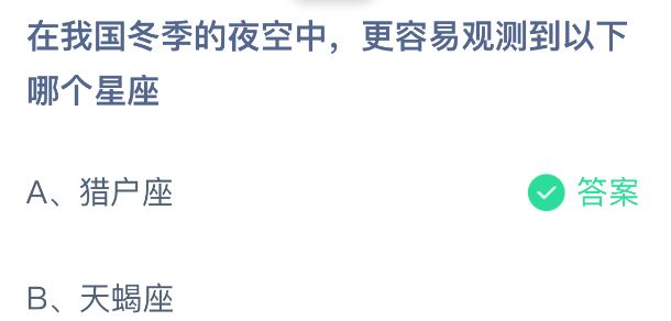 以上就是在我国冬季的夜空中,更容易观测到以下哪个星座?支付宝蚂蚁庄园2026年1月15日答案最新,更多相关攻略,请关注3dm手游网更新!