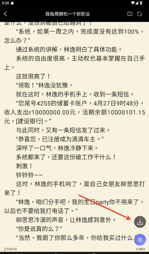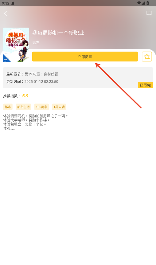 1.立即阅读一本小说,进入阅读界面。