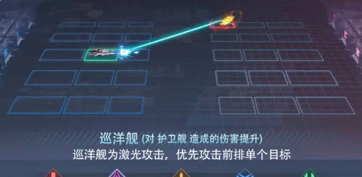 巡洋舰就是穿梭战场的突击手,聚焦激光能够精准的点破敌方的防御,可以优先锁定前排单个目标。比较擅长的是针对护卫舰去实施压制,伤害提升效果可以让他更快的清除敌方前排的战斗力,打破敌方精心布置的阵型。在实际作战的过程中,巡洋舰一直都会作为先锋部队,可以直接撕开敌方防线的缺口,可以给后续的舰队推进铺平一条道路。