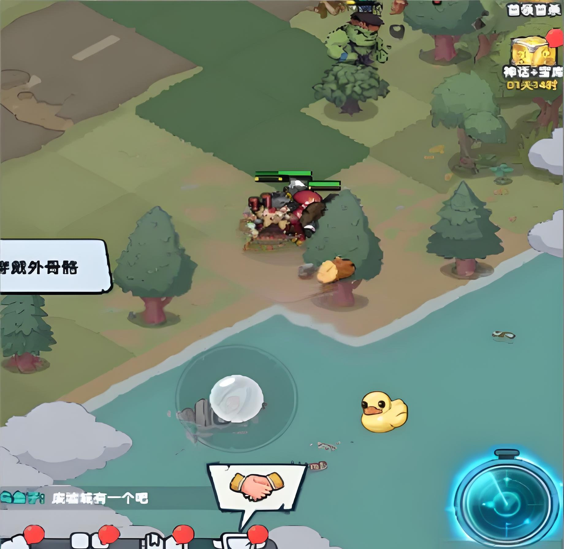 第五个彩蛋在废墟之城这里,在废墟之城小黄鸭这里,玩家每打一下小黄鸭就会获得2个钞票,第六个彩蛋也在废墟之城这里,在旷野之森的湖水中有一个宝箱,玩家只要走到指定的文职上后,湖水就会直接变成陆地,然后就可以拿到这个宝箱了。