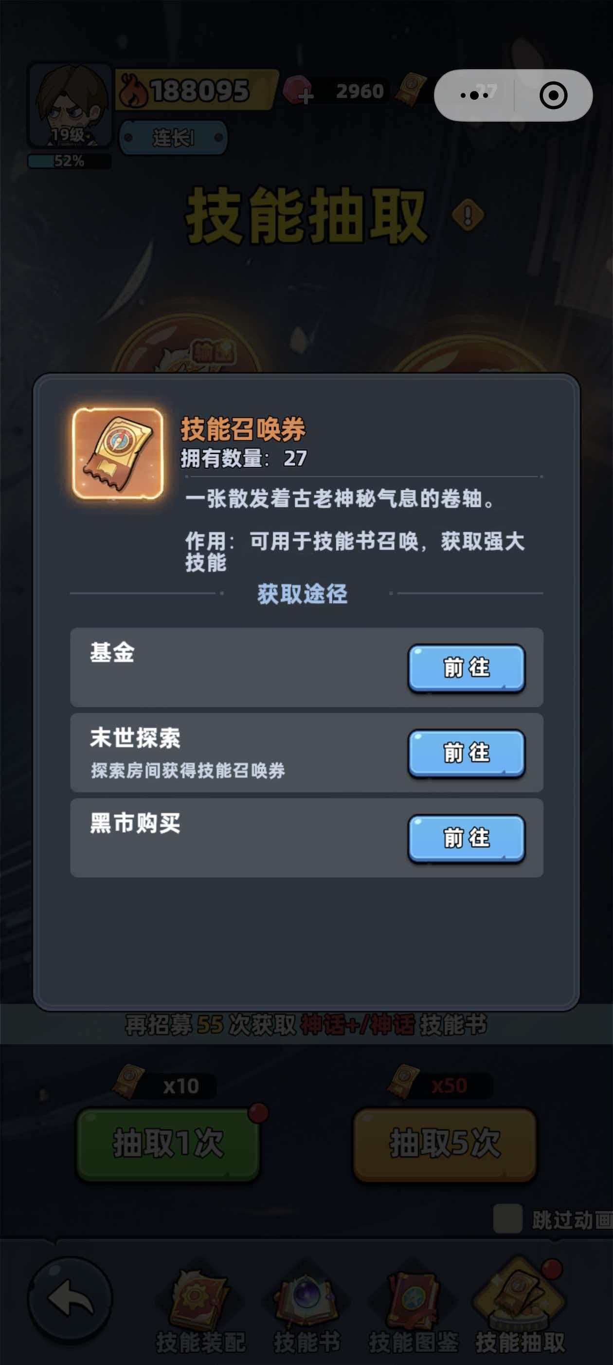 第二种获取技能书的方法就是室内探索了,室内探索这种方法虽然主要获取技能召唤券,可是若玩家运气好的话,也是有可能获得整本的技能书呢。
