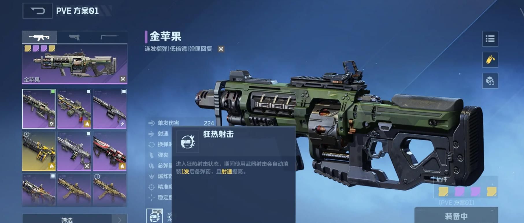 金苹果是游戏里的一个武器,作为t0级别的榴弹枪,在每次对战的过程中都可以触发连续伤害,这样的伤害机制,让枪械非常适合大量的丧尸群体,非常适合使用这个枪械加入到pve战斗,这把枪械在游戏里会有无限火力机制,主要是因为枪械会有一项技能,只要能命中对手,那就可以自动恢复弹药,在这个过程中,玩家可以实现无缝输出,不用再因为更换弹药浪费时间,更重要的原因是因为枪械的爆发伤害非常优秀,会比常规的枪械攻击力更强一些。
