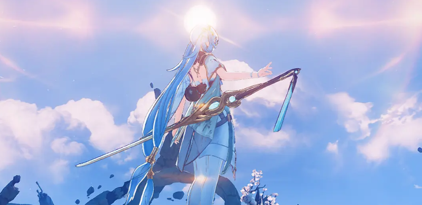 该武器采用蓝白主色调,整体设计融合精密仪器与宇宙观测意象,呼应“万端造物,析解万象”的核心理念。其造型语言强调理性、秩序与可推演性,象征在复杂战斗环境中建立稳定支援节奏的能力。