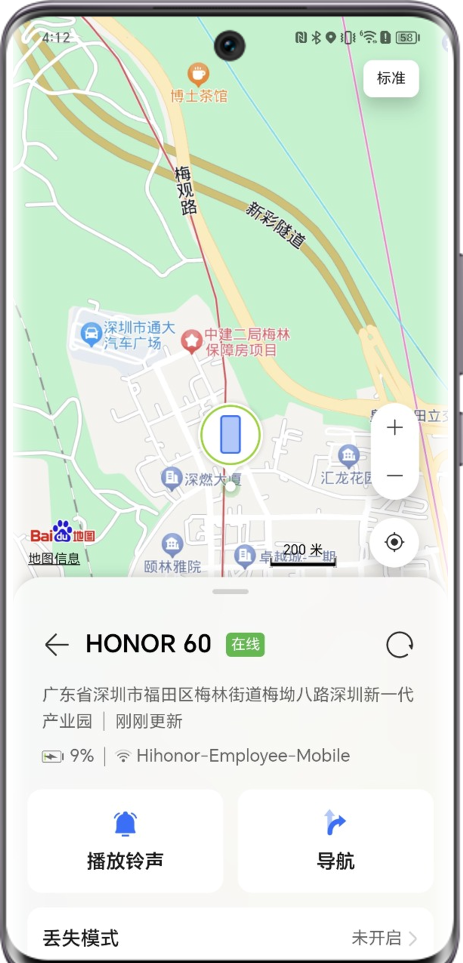 * 铃声为穿透力较强的警报音,时间约为2分钟左右,被定位设备在屏幕解锁后可以主动关闭铃声。尽量避免远距离开启铃声,以免将电量耗尽或者被人为关机,导致无法定位。